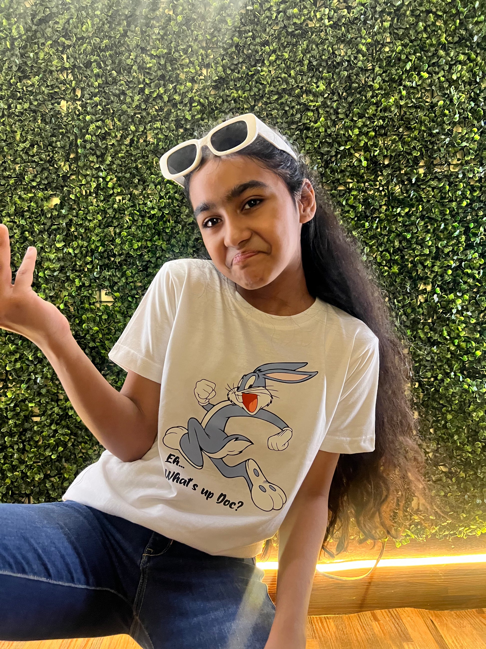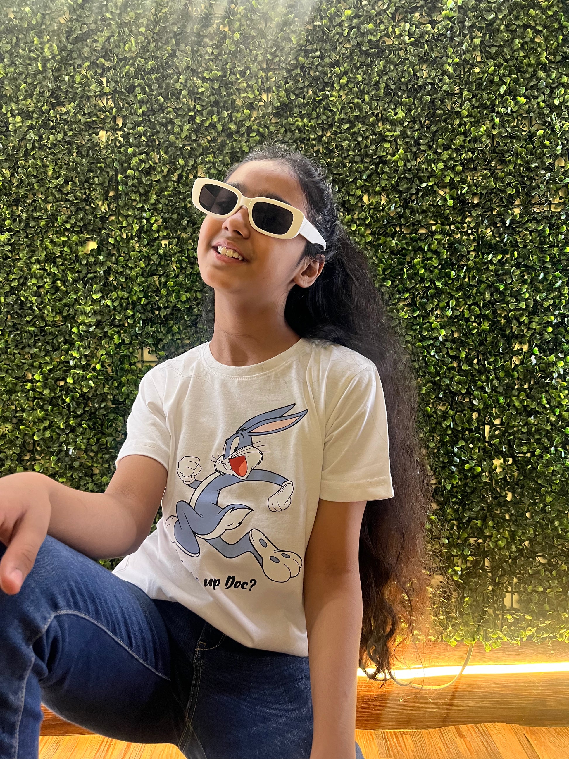 A UNISEX REGULAR FIT ON SPECIAL DEMAND BY KIDS UNDER AGE OF 6 YEARS TILL 15 YEARS BUGS BUNNY IS READY FOR ALL OF YOU GIRLS & BOYS IN WHITE COLOUR TSHIRTS.