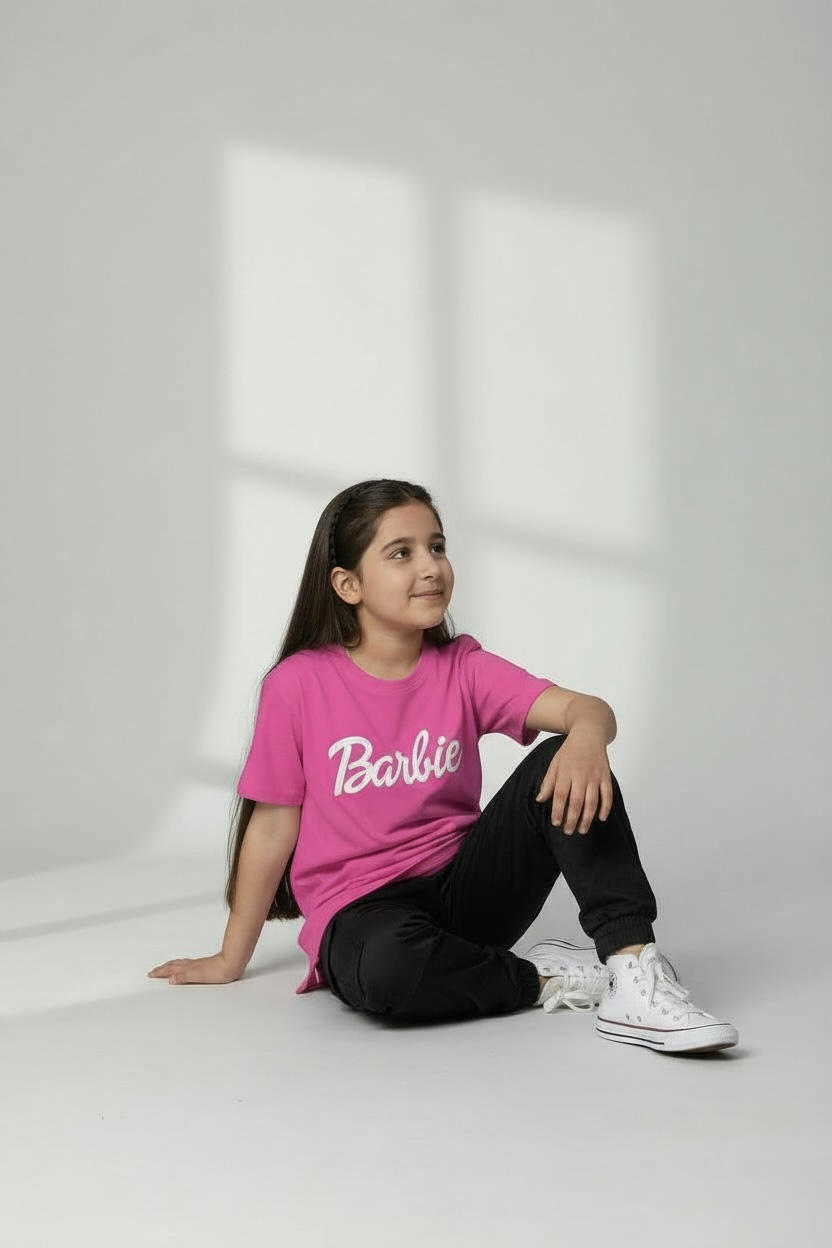 ON SPECIAL DEMAND BY KIDS UNDER AGE OF 6 YEARS TILL 15 YEARS BARBIE IS READY FOR ALL OF YOU GIRLS IN BLACK & WHITE COLOUR TSHIRTS