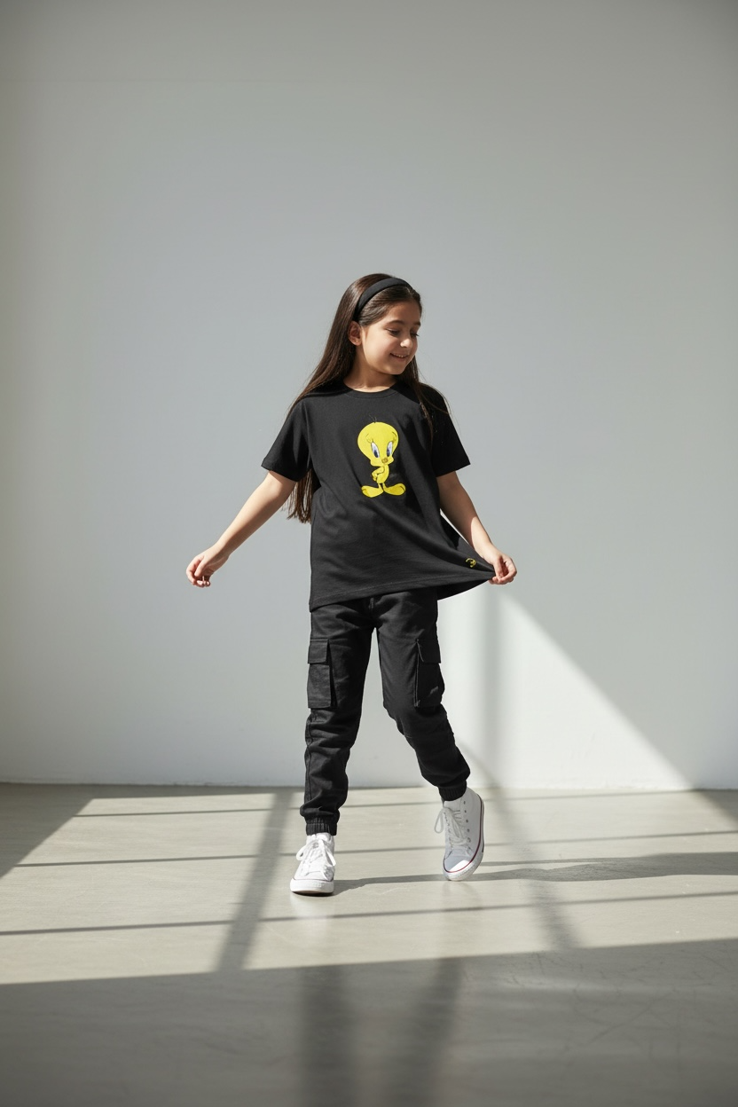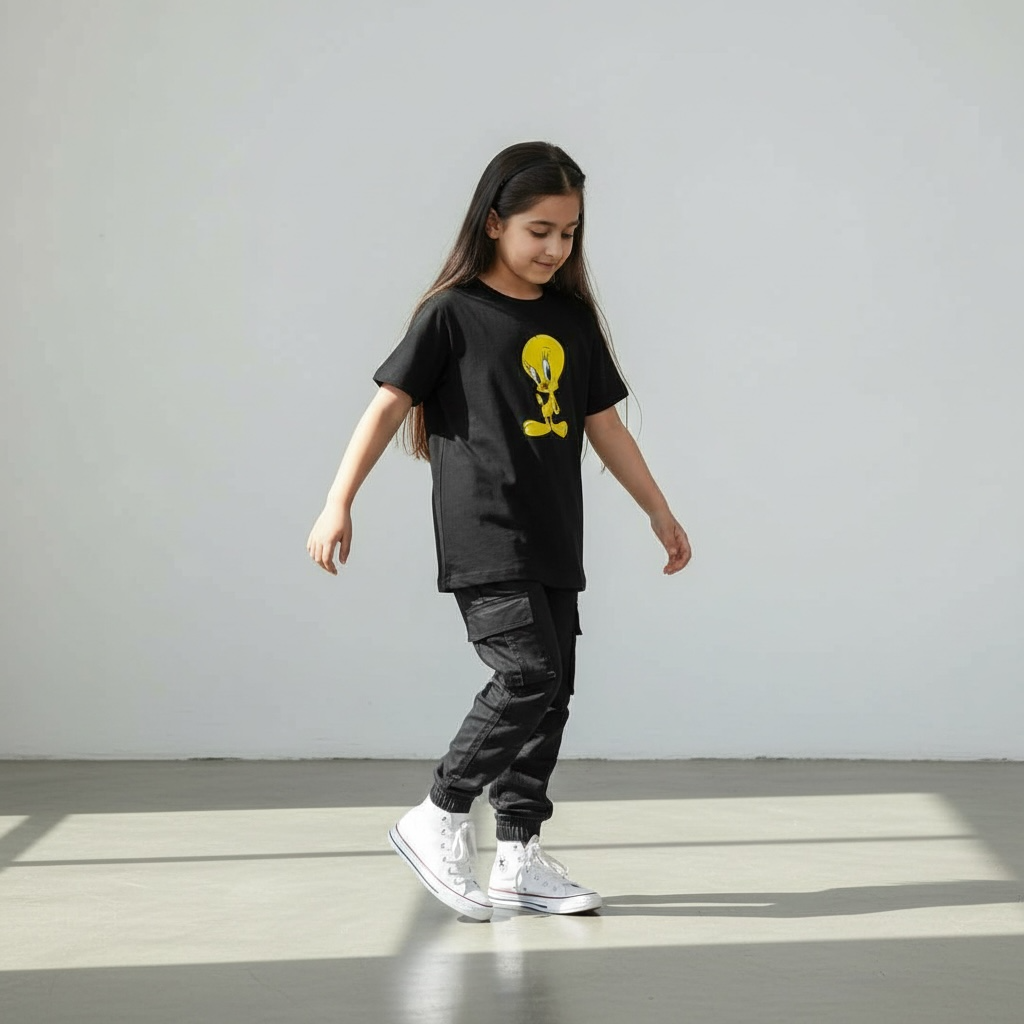 This shirt is made from soft breathable fabric specially for kids comfort and all day wear featuring playful character of tweety to make it playful.