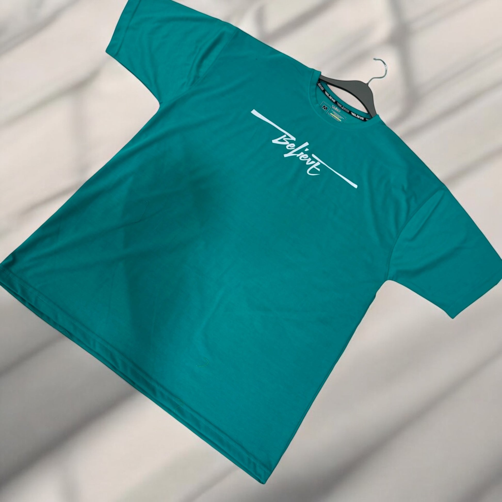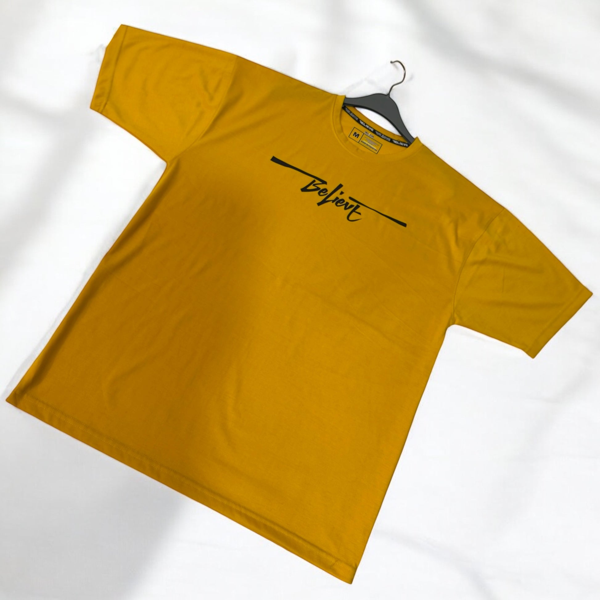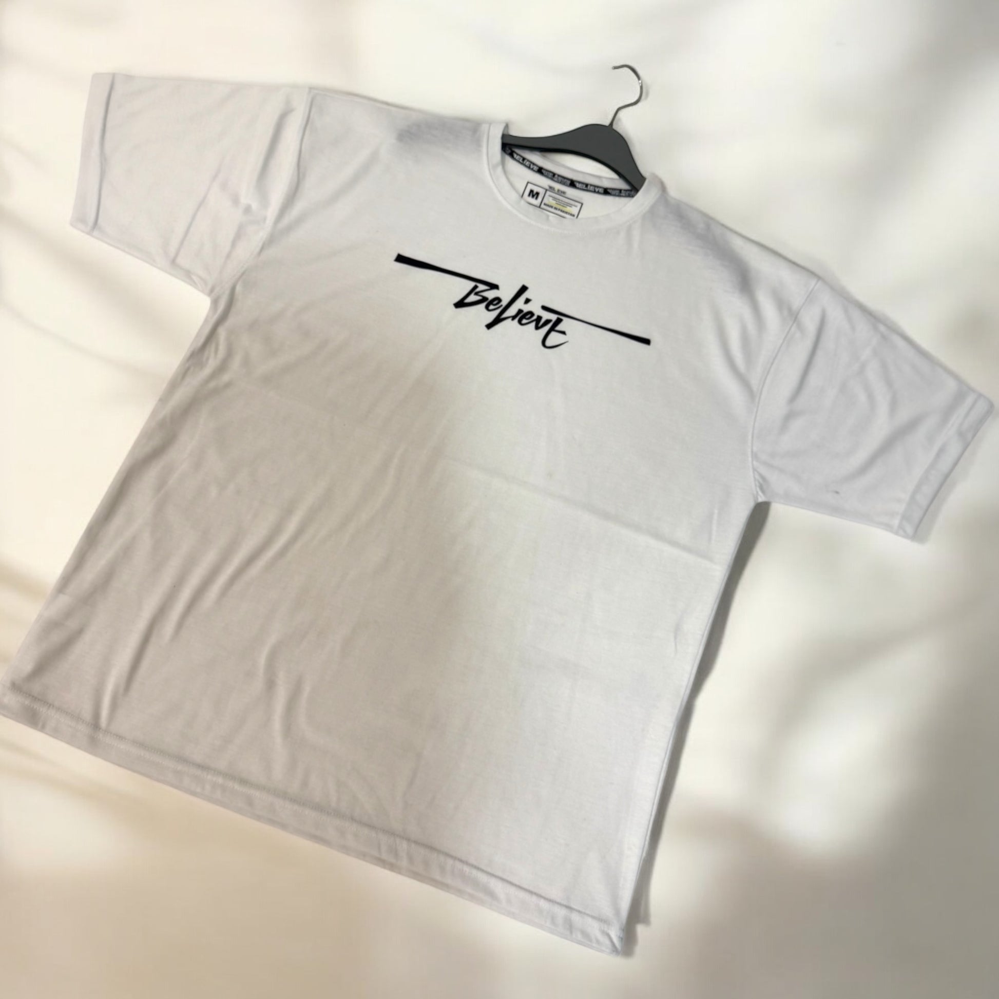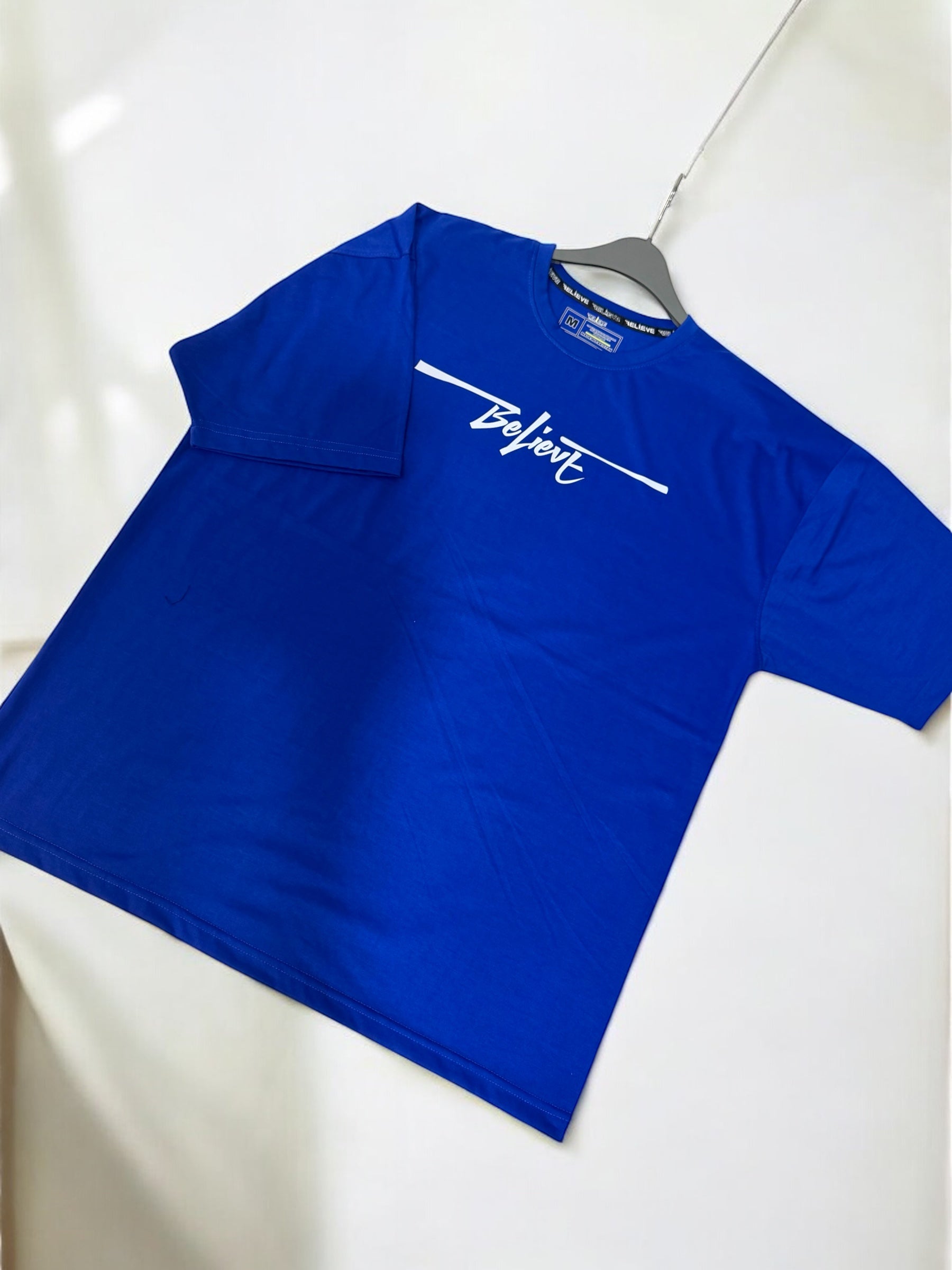 Crafted from premium-quality fabric, this oversized tee is designed for a relaxed yet stylish fit. The highlight? "Believe" written in an eye-catching, artistic design that makes a bold statement. Whether you're hitting the gym, lounging, or stepping out in streetwear fashion, this tee is your go-to for effortless style and motivation.