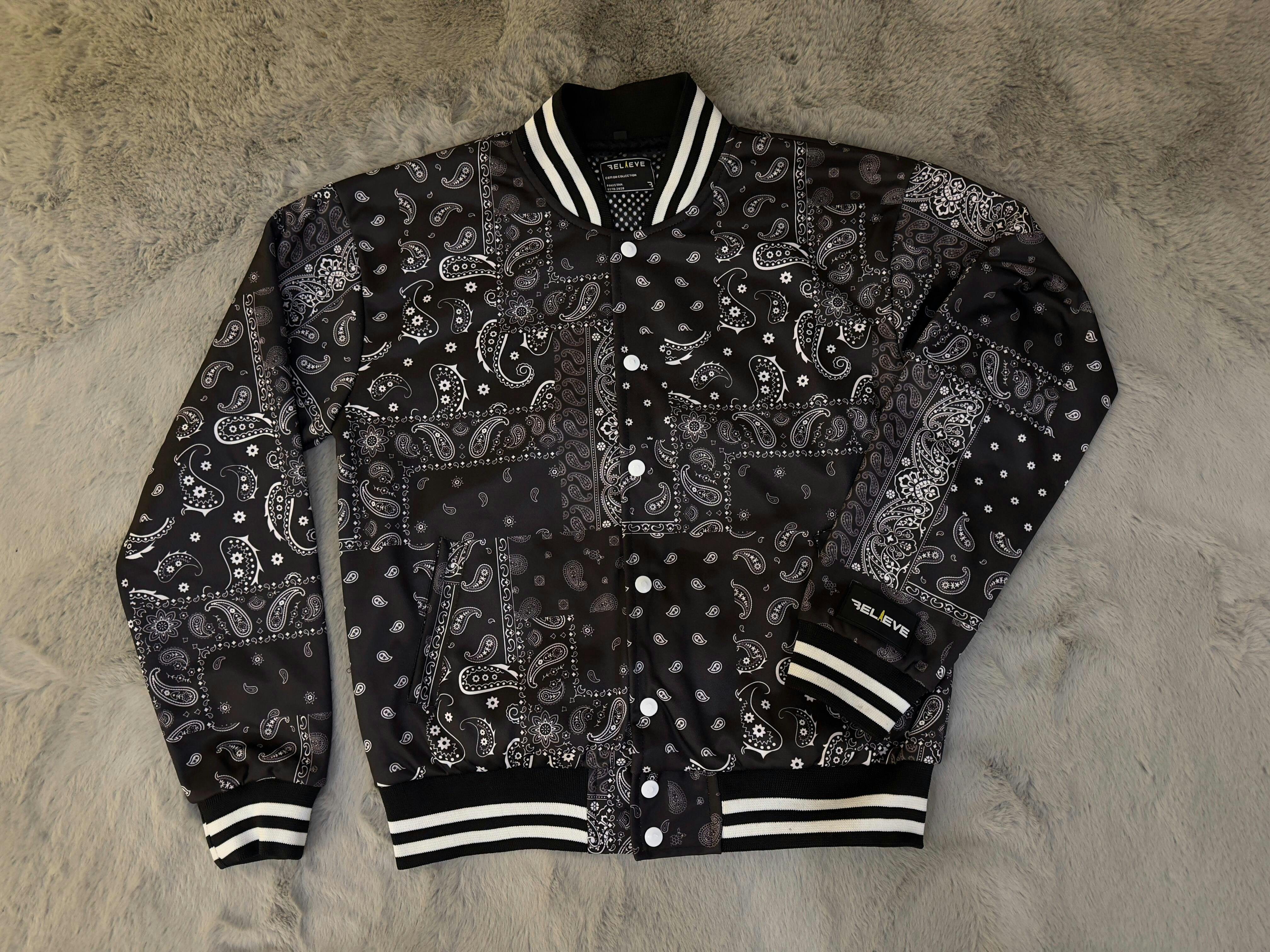 Bold, graphic, and unapologetically sharp. The Paisley Varsity reworks a classic all-over sublimation print that hits different from every angle. Crafted from soft polyester fleece, it delivers warmth without weight and a smooth, durable finish that keeps the print crisp over time.