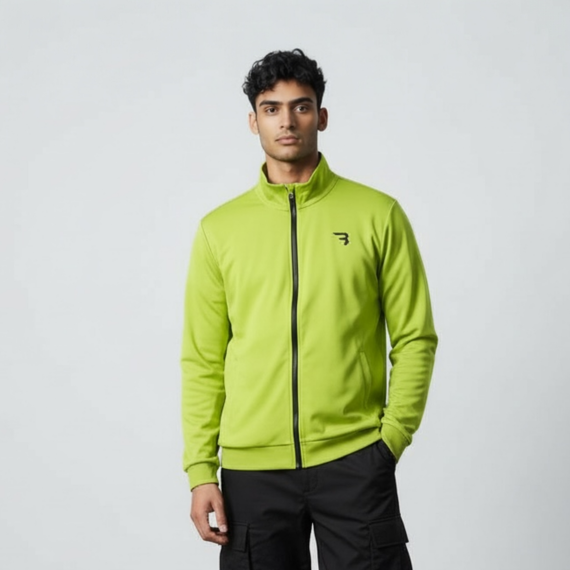 The NeonFlex Performance Jacket delivers a clean, athletic look with everyday versatility. Designed in a bold lime-green hue, this full-zip jacket features a streamlined silhouette, stand collar, and minimalist chest logo for a modern sportswear aesthetic. Whether you’re warming up, cooling down, or layering for casual wear, it offers comfort without compromising style.