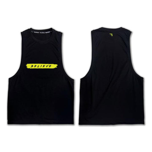 Introducing our vibrant tank top featuring the word "Believe" in striking neon burst. It combines a...