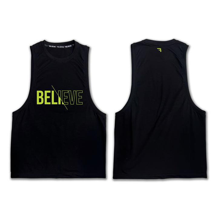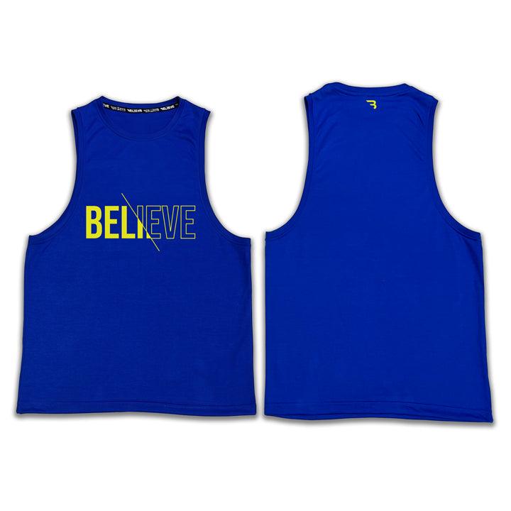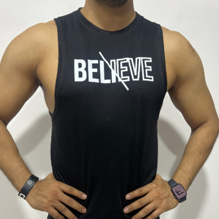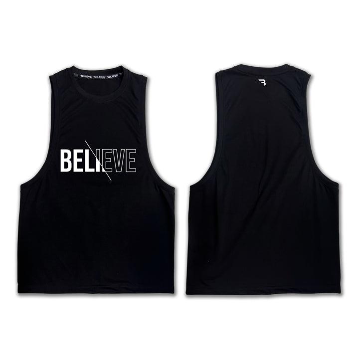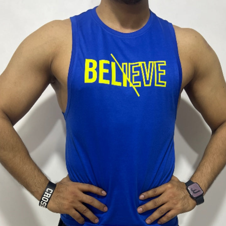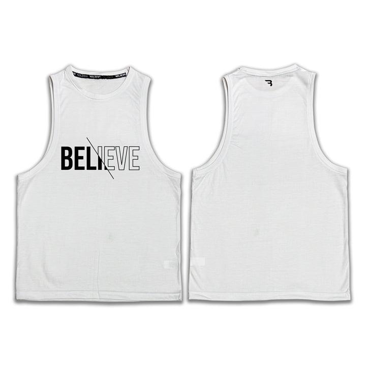 Showcase the power of positivity with this inspiring tank top, featuring the word "Believe" prominently displayed across the chest. Crafted from a soft, lightweight blend of fabrics, this tank top is designed for both comfort and durability. Its versatile cut ensures it fits seamlessly, making it perfect for workouts. The simple yet powerful message serves as a daily reminder to hold on to your convictions and push forward, making this tank top not just a piece of clothing, but a statement of resilience and hope.