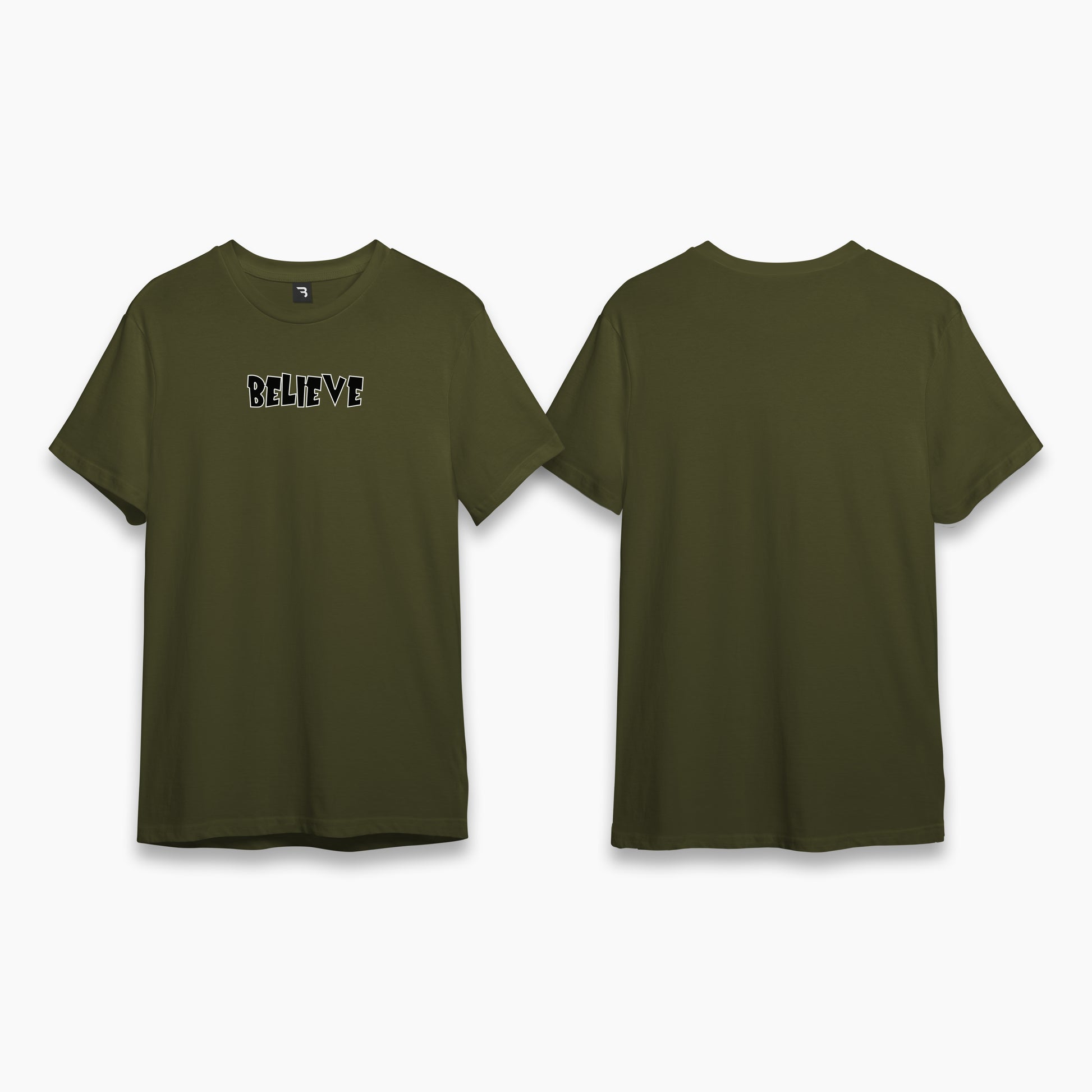 Introducing our Regular Fit Believe Tee. Made from soft, breathable cotton, this tee combines comfort with style for everyday wear. The minimalist "Believe" print serves as a reminder to stay focused, inspired, and empowered in all you do. With a classic cut and versatile look, it's perfect for workouts, casual hangouts, or wherever your journey takes you. Keep believing, and let your tee speak for itself.