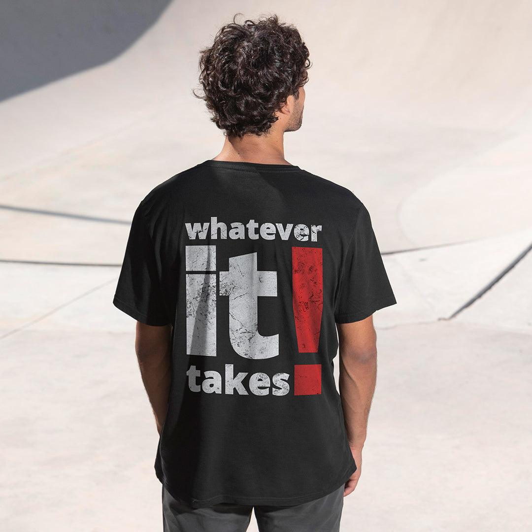 A comfortable polycotton tee that resonates determination with “whatever it takes” print on back. Perfect for men and women both. Can be worn in gym or styled for an outing with friends.