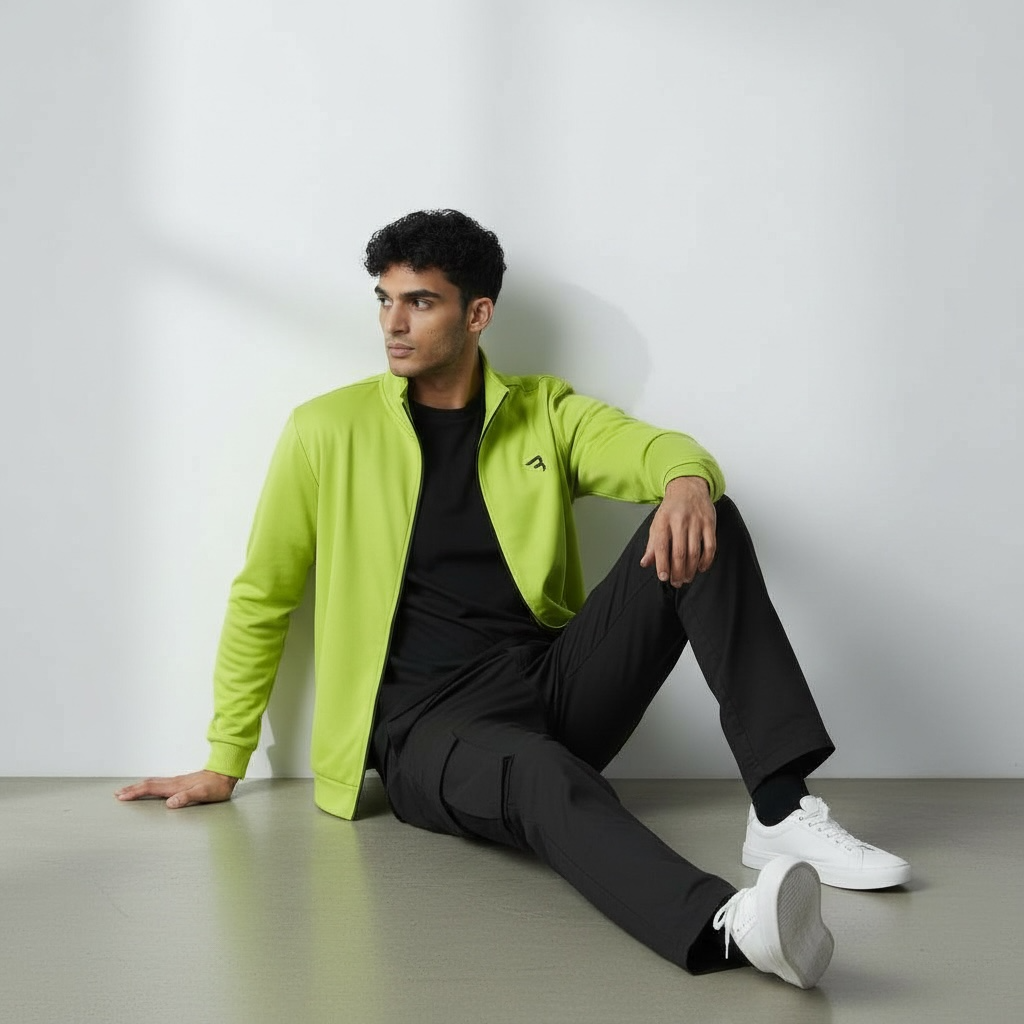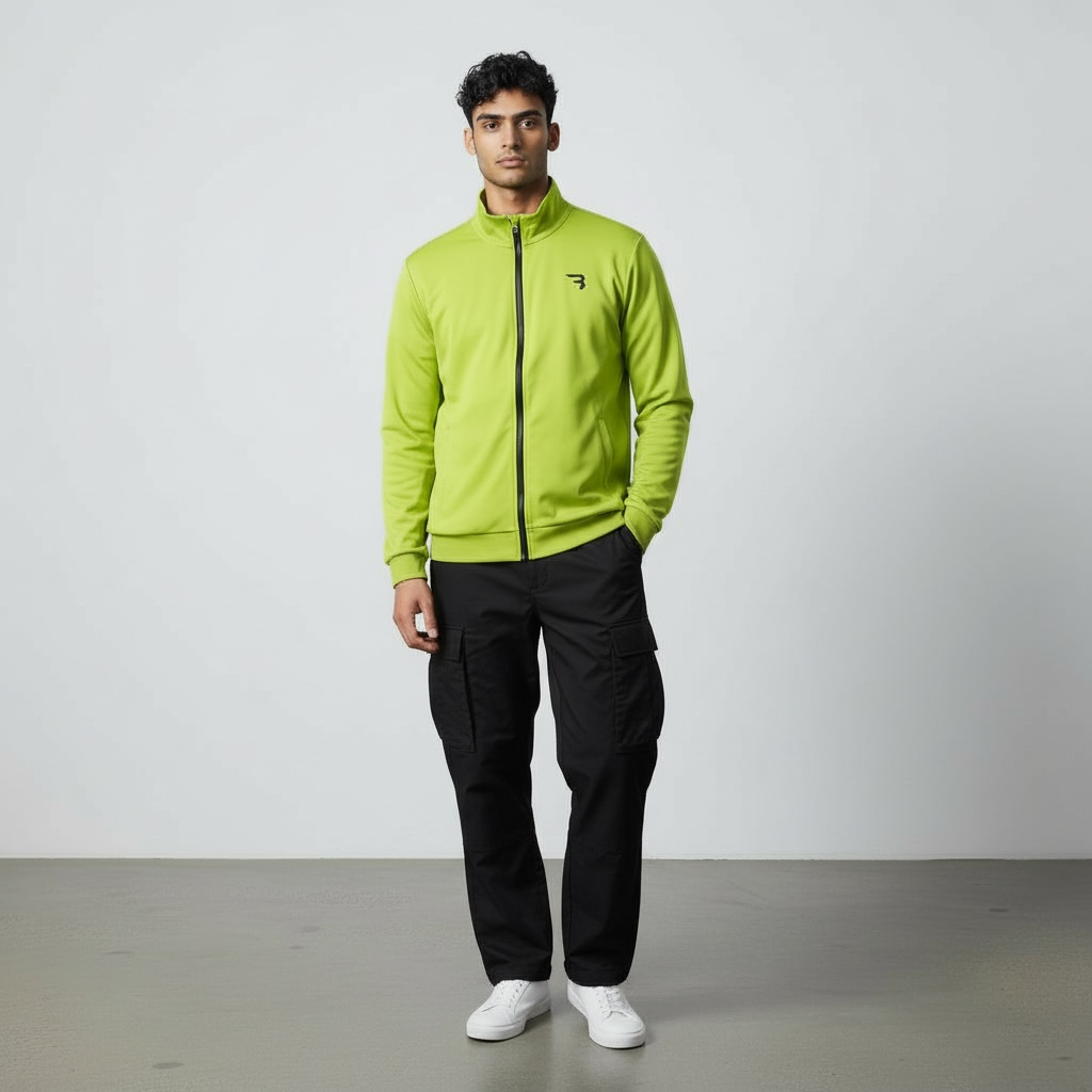 The NeonFlex Performance Jacket delivers a clean, athletic look with everyday versatility. Designed in a bold lime-green hue, this full-zip jacket features a streamlined silhouette, stand collar, and minimalist chest logo for a modern sportswear aesthetic. Whether you’re warming up, cooling down, or layering for casual wear, it offers comfort without compromising style.