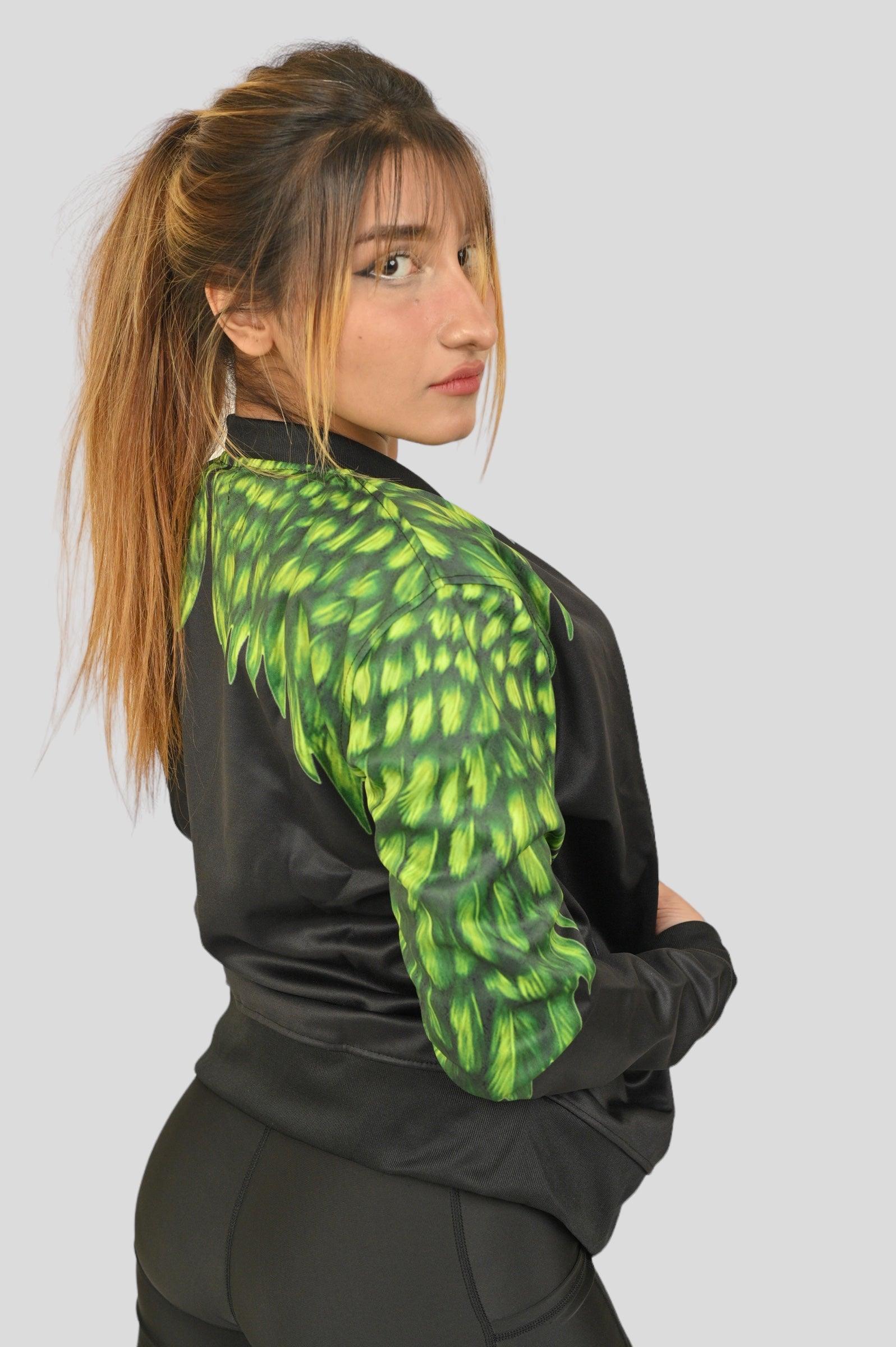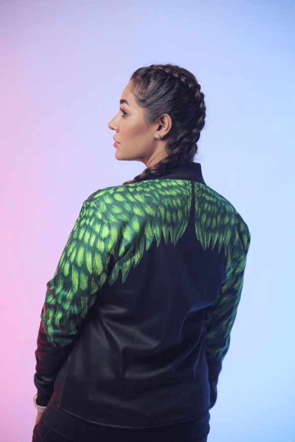 Soar to new heights of style and performance with our AeroFlex Feather Green Zipper Jacket. Crafted from cutting-edge moisture-wicking fabric, this slim-fit sensation ensures you stay dry and comfortable while making a bold fashion statement. The sleek and tailored look meets the eye-catching sublimation design, creating a unisex masterpiece for men, women, boys, and girls alike.