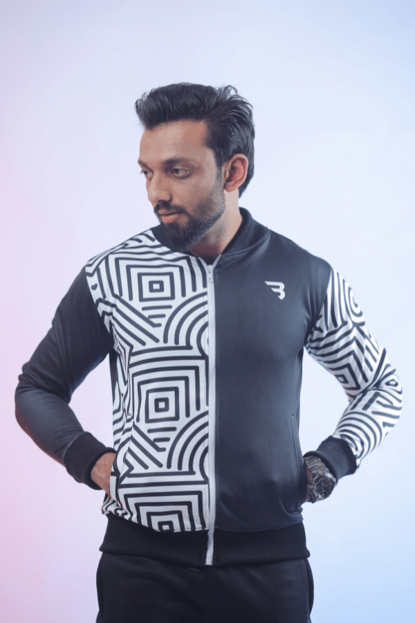 Get in the groove with GrooveFlex – where funk meets function. Elevate your athletic wear wardrobe with a jacket that embodies the spirit of performance and funky style.