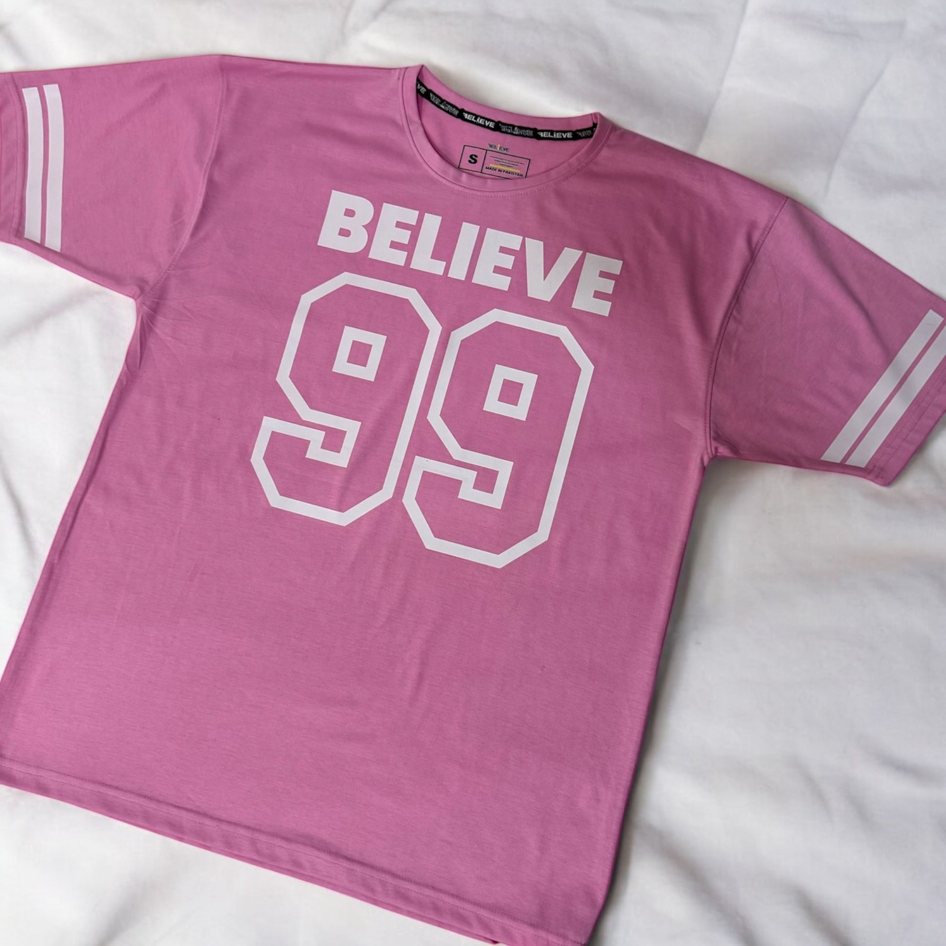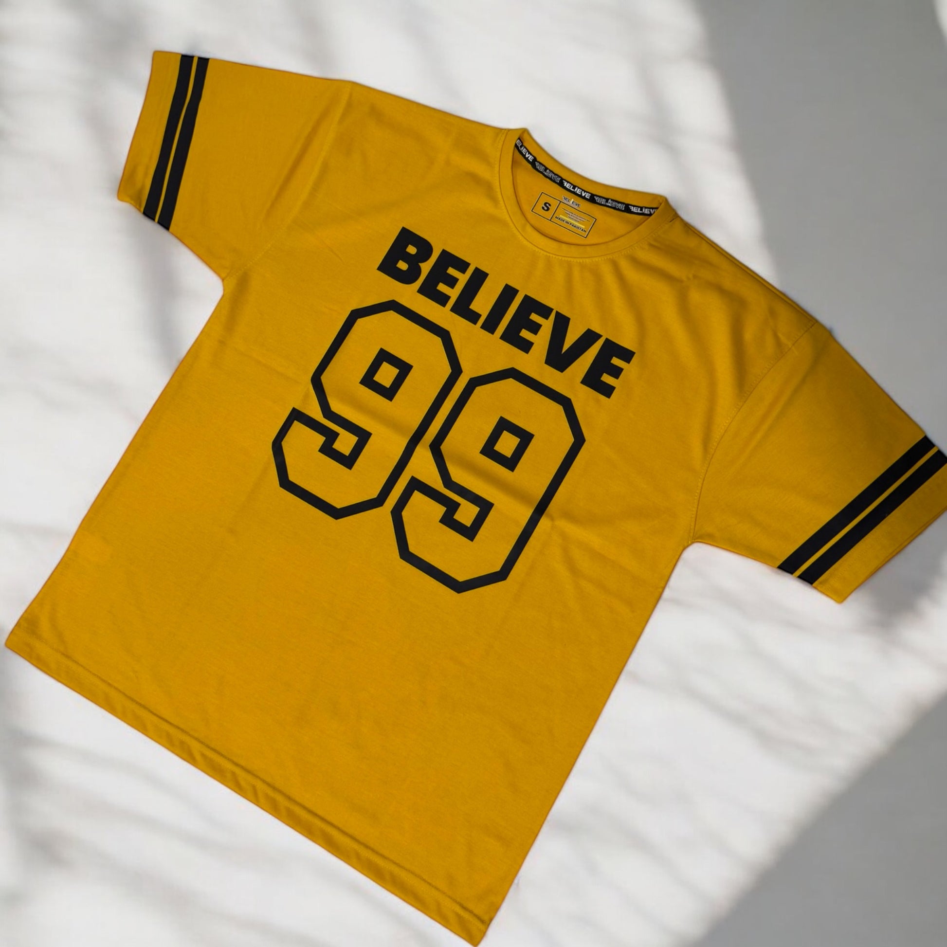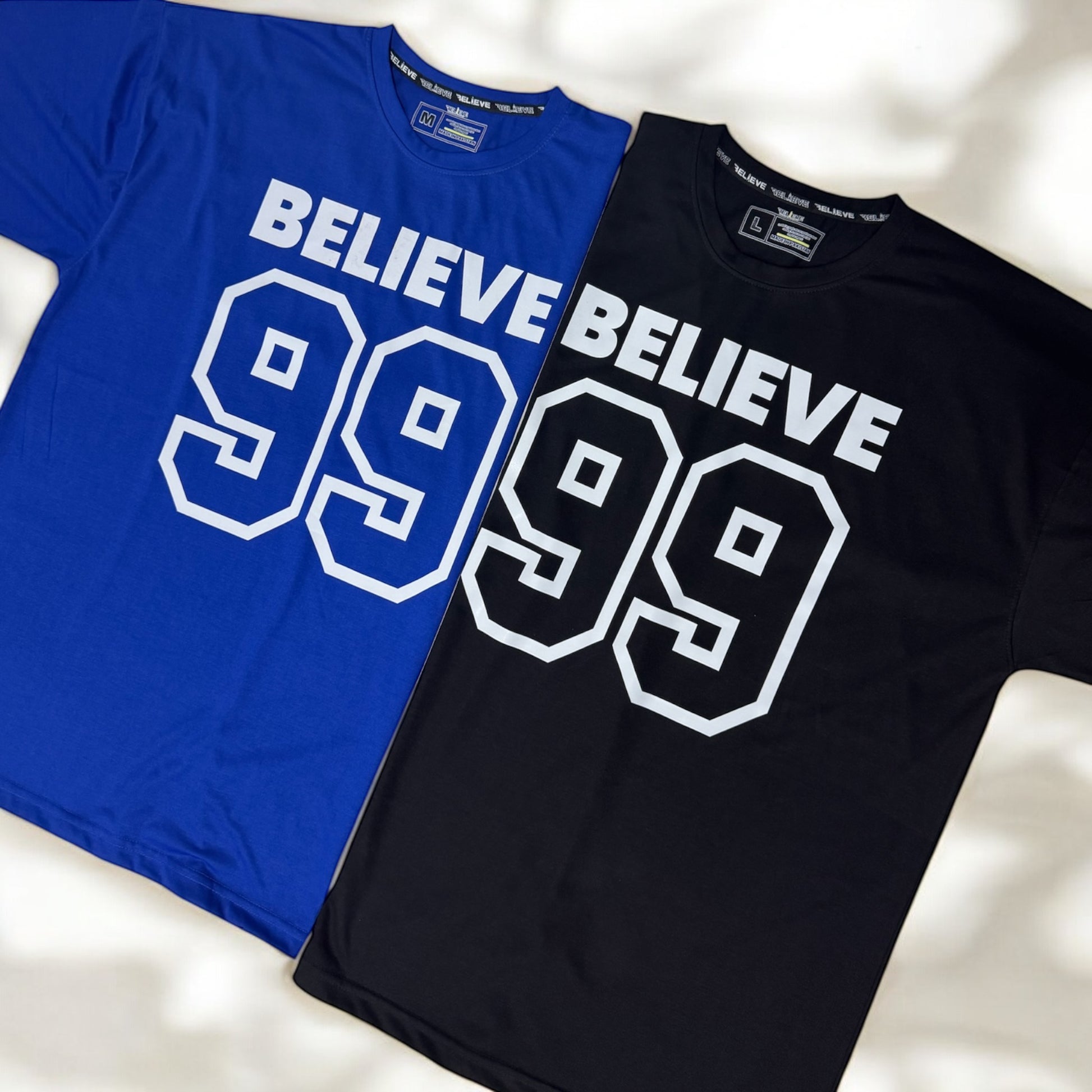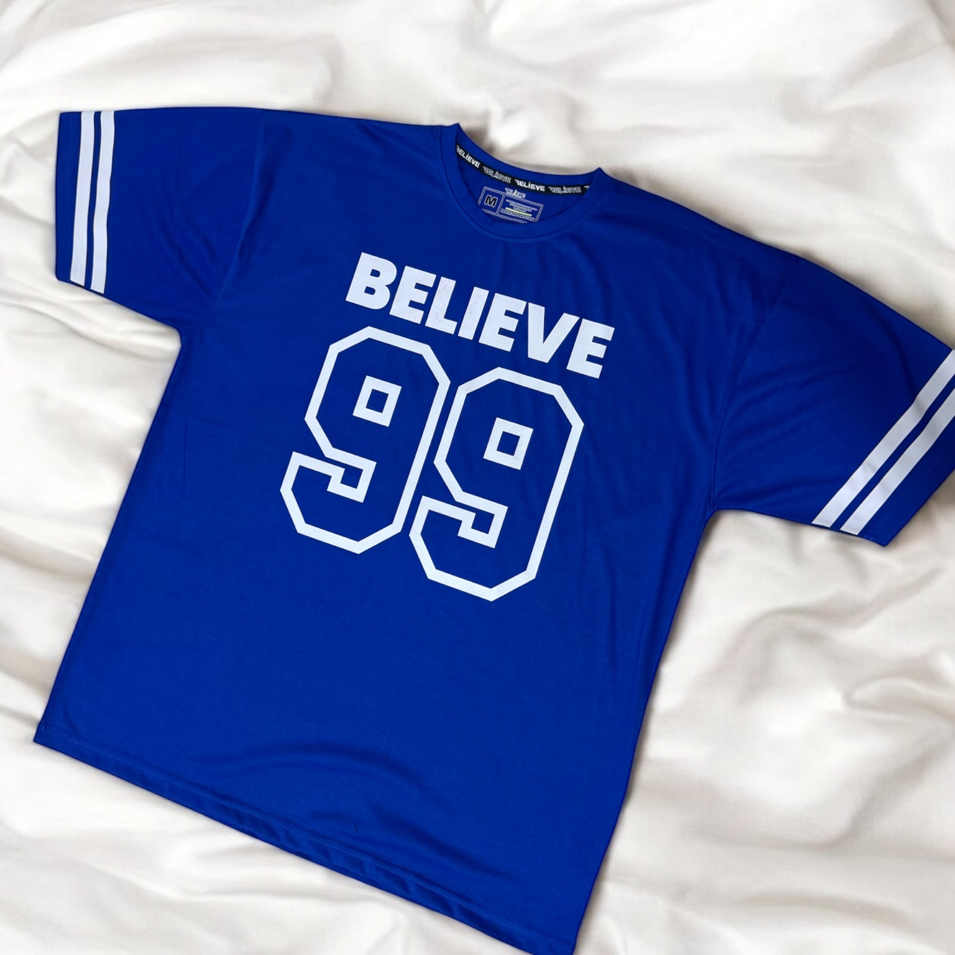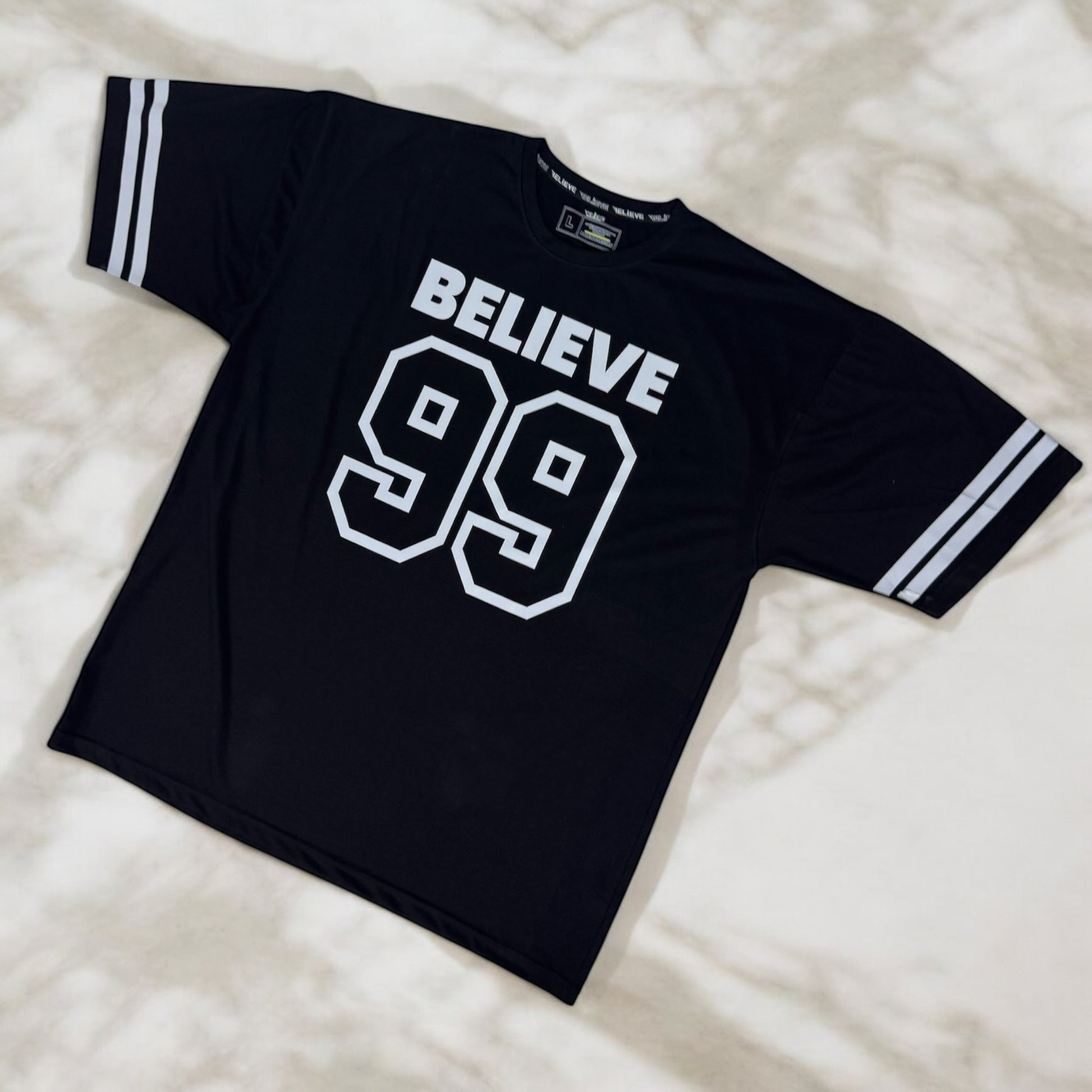 Step into timeless streetwear with the BELIEVE '99 Legacy Tee. Crafted for comfort and confidence, this oversized tee brings a classic varsity vibe with bold “BELIEVE” lettering and the iconic “99” print that speaks of ambition, grit, and legacy. Featuring double-striped sleeves for an athletic edge, it's perfect for making a statement—whether you're hitting the gym, the streets, or just chilling with the squad.