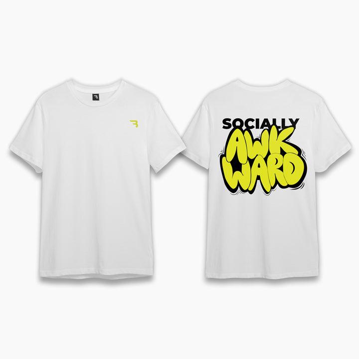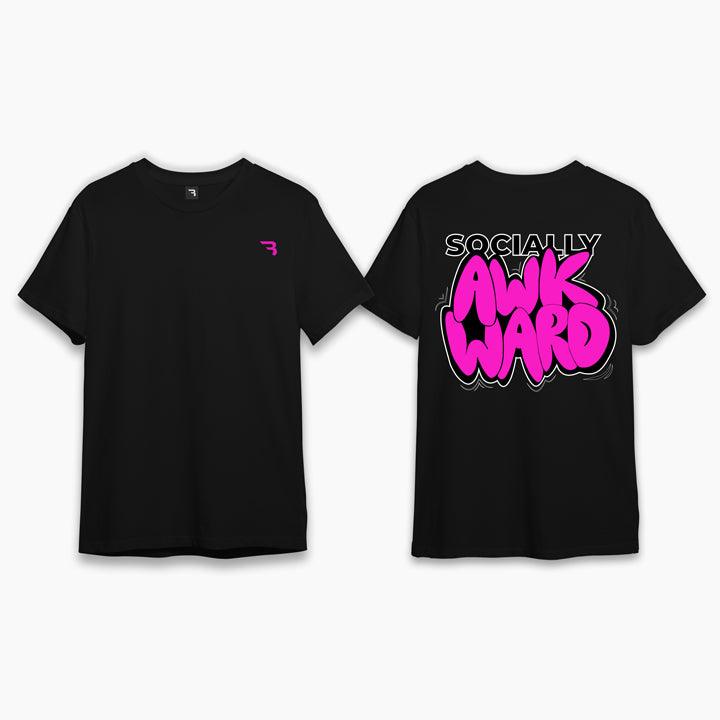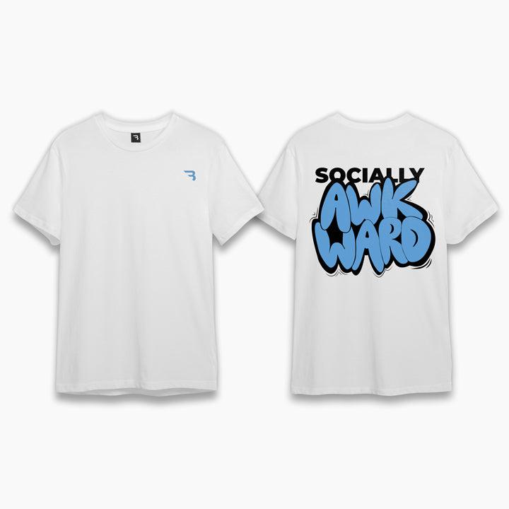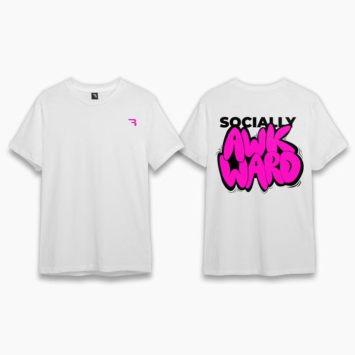 Our shirt features a clean, minimalist front, while the back is boldly adorned with the phrase "Socially Awkward" in striking orange text. This playful yet relatable statement piece is sure to resonate with those who embrace their quirky side. Made from soft, high-quality fabric, this tee combines comfort with a touch of humor and personality.