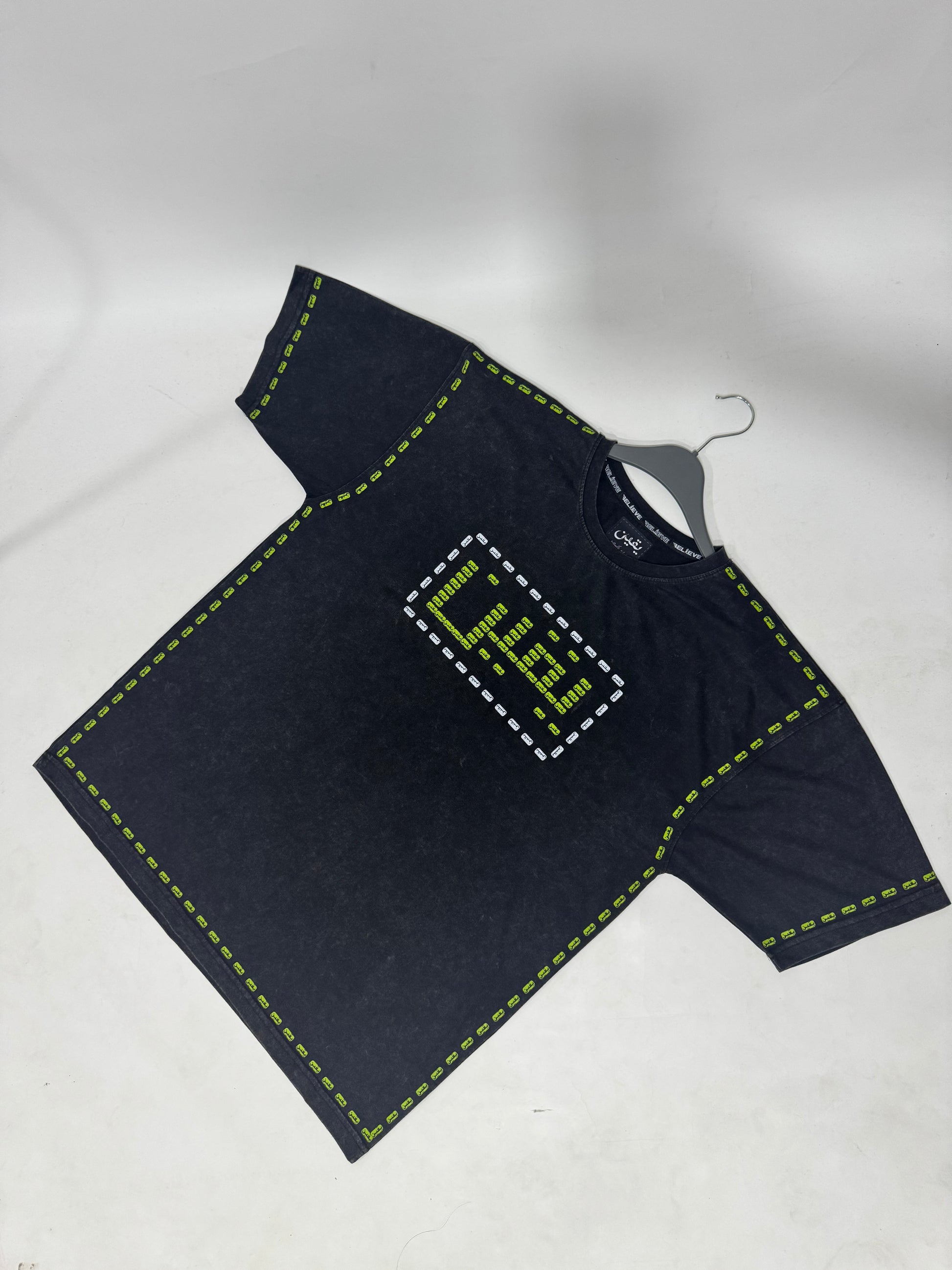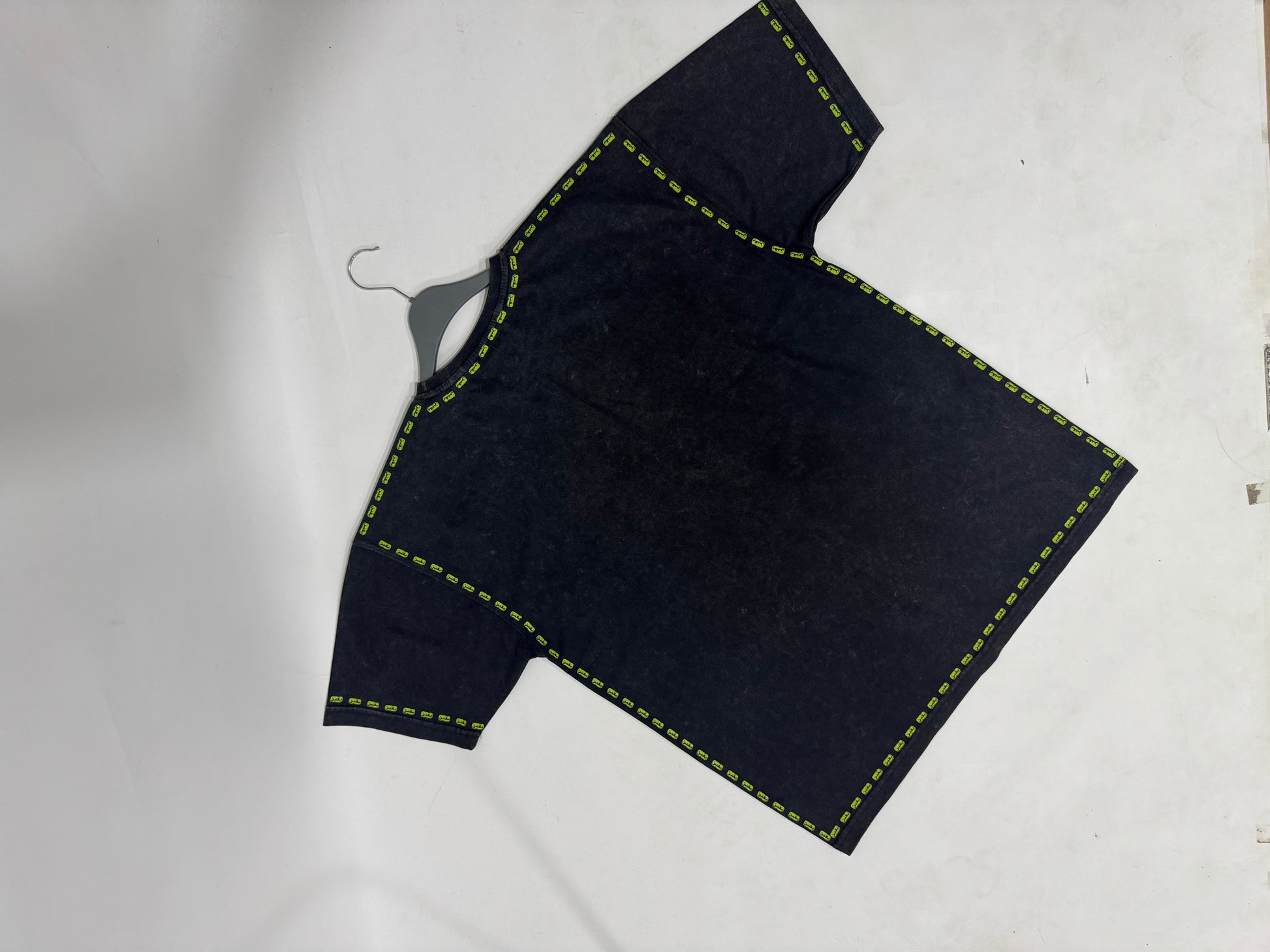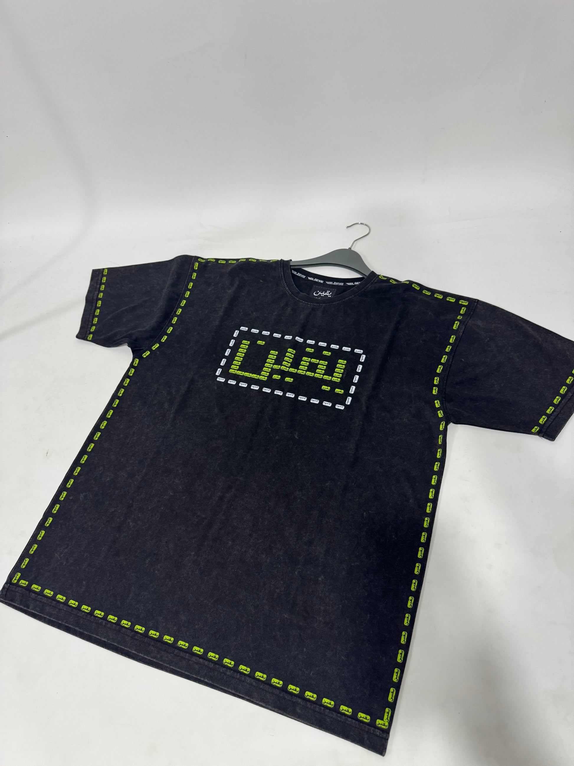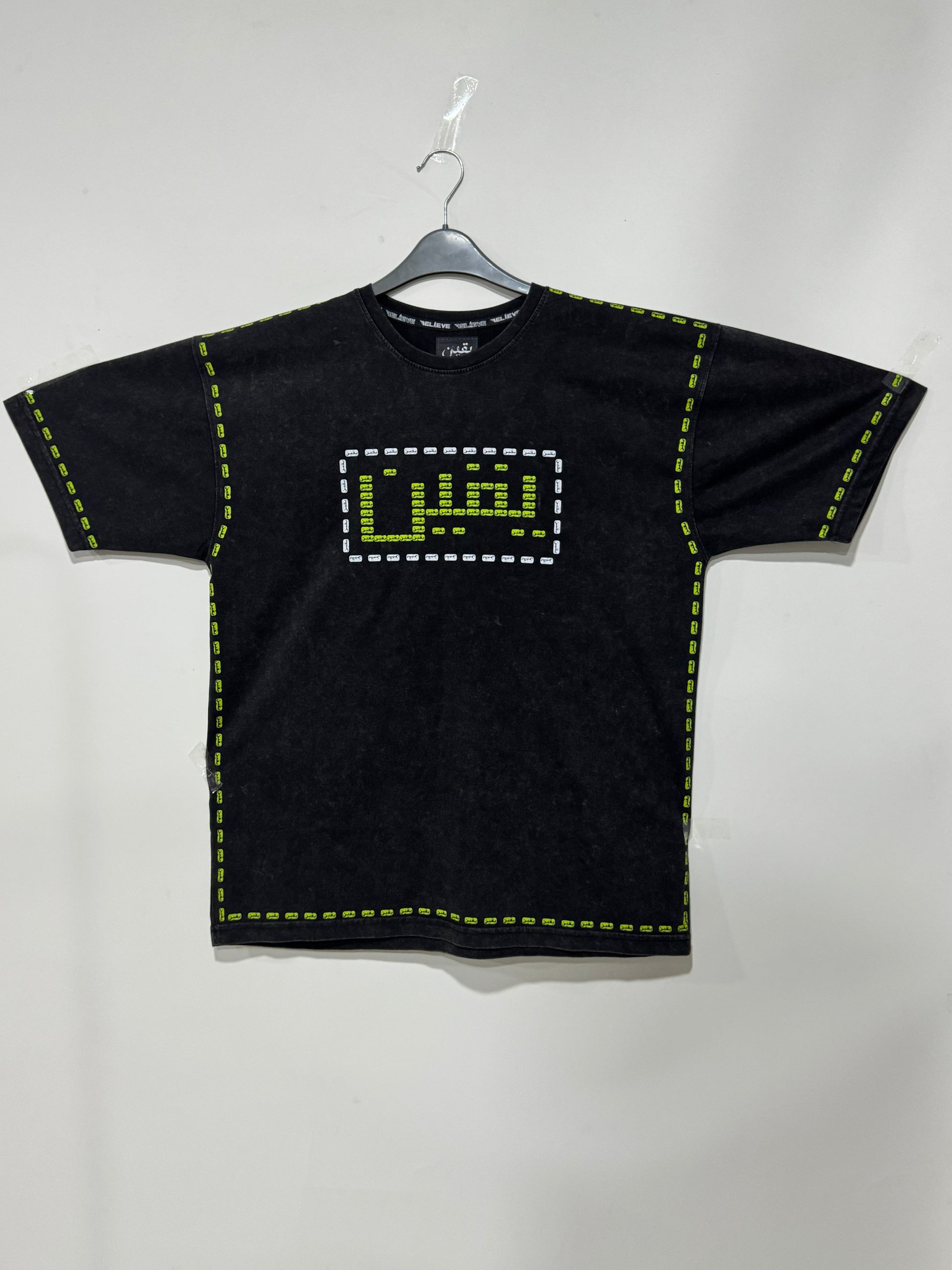 Crafted with a stone-washed finish for that raw, street-edge look, this piece combines culture with modern streetwear. Neon stitch detailing adds a sharp contrast, making the shirt pop from every angle.